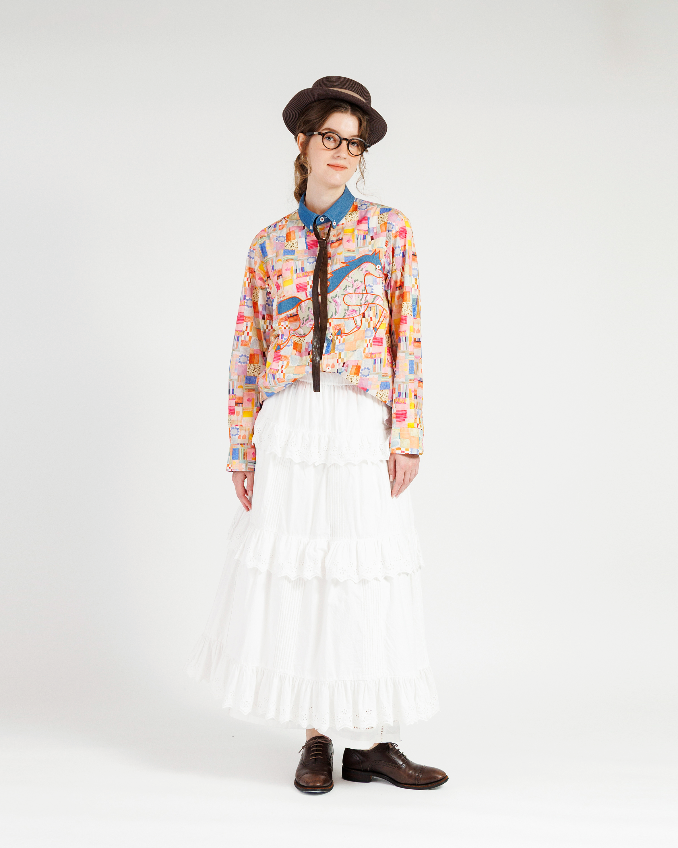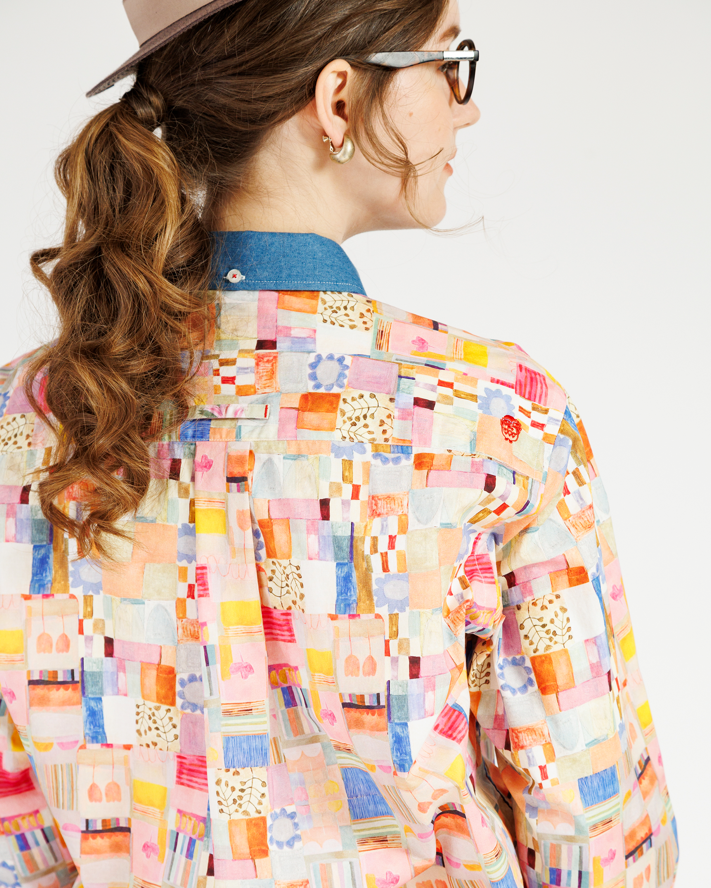 パッチワークプリントのシャツです。